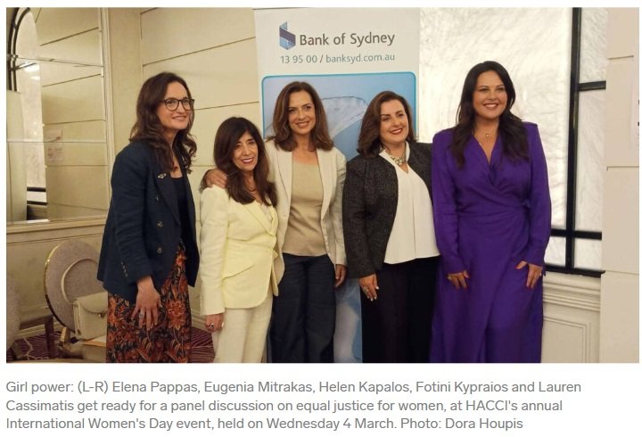 At HACCI’s International Women’s Day celebration, Eugenia Mitrakas OAM shared her insights alongside fellow legal professionals, exploring the realities women face in the justice system—from representation to access and structural inequality.